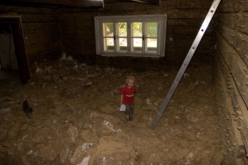 Seník jsme nutně potřebovali pro skladování sena pro ovce. Po sežrání části sena sloužilo uvolněné místo jako "porodnice" v období bahnění.